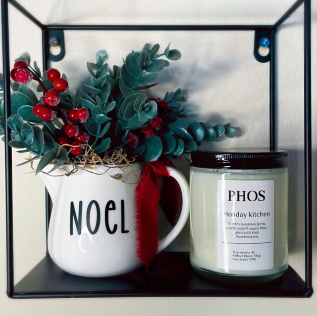 Φέρε τη μαγεία των Χριστουγέννων στο χώρο σου με αυτή τη μικρή λευκή κανατούλα, στολισμένη με υπέροχα χριστουγεννιάτικα λουλούδια.